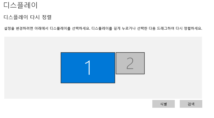 여러 디스플레이라고 써져 있는곳을 보면 1에만 표시 이렇게 되어 있습니다. 이렇게 설정이 되어 있으면 해당 번호의 장치에만 화면이 보이게 됩니다.
