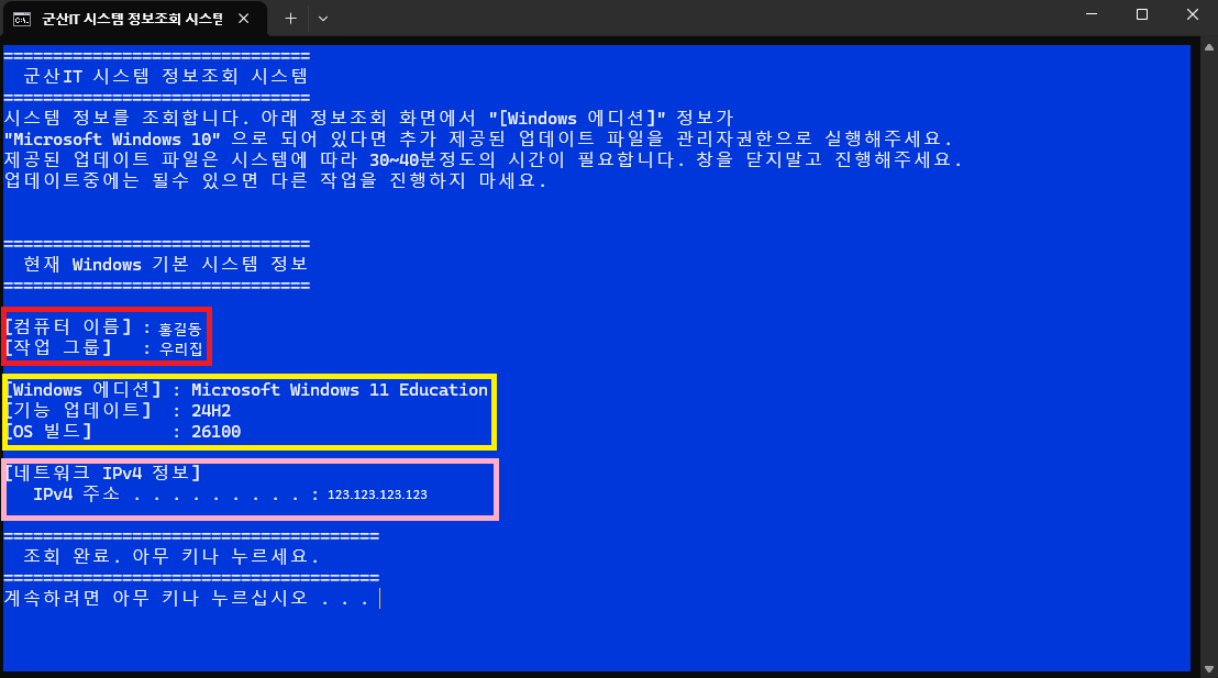 오늘은 배치파일을 통하여 컴퓨터이름과 IP주소를 쉽게 확인하는 방법 입니다.
