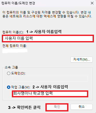 1. 컴퓨터이름: 사용자이름 입력